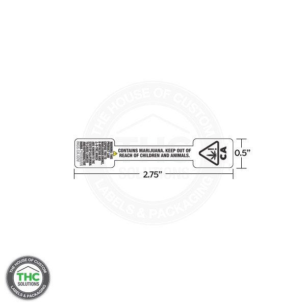 California Prop 65 Warning tamper evident label, with a silver poly void text left behind if removed.